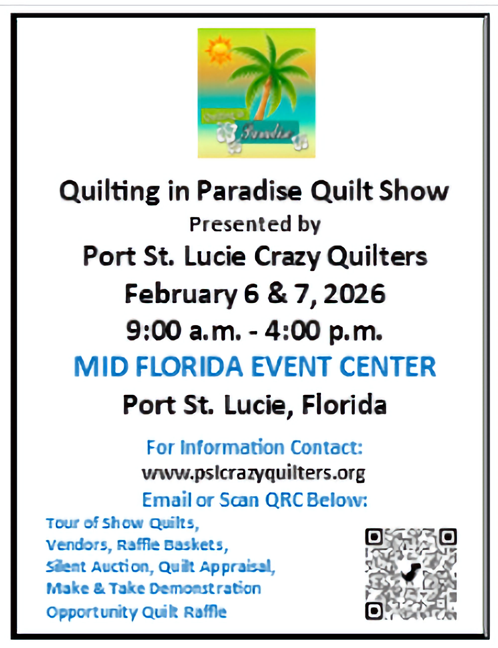 - Port Saint Lucie Crazy Quilters Show - https://www.pslcrazyquilters.org/quilt-show-2022.html
